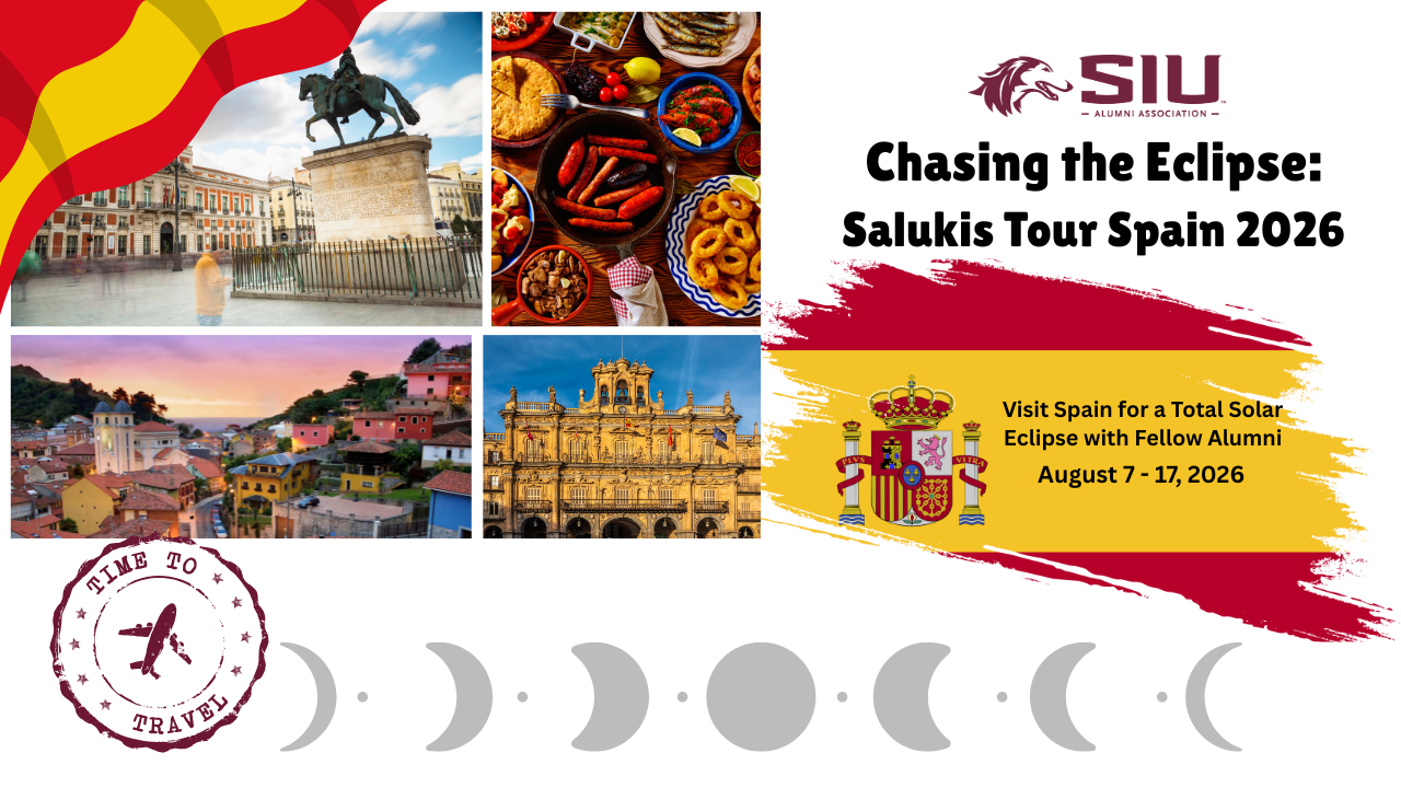 The SIU Alumni Association is proud to announce the return of its travel program with an exciting opportunity to tour Spain in August of 2026! Join fellow SIU alumni for an unforgettable journey, culminating in a breathtaking view of a total solar eclipse. This experience blends cultural exploration, history, and astronomy for a once-in-a-lifetime adventure. Register soon, as space will be limited.